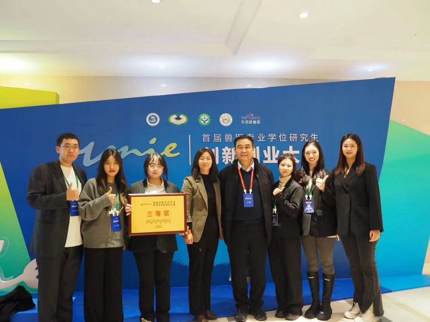 2023年12月28日,首届兽医专业学位研究生创新创业大赛在南京举行。beat365兽医专业“宠物临床医师”专项班研究生团队,在专班负责人姚华老师的指导下,从决赛中脱颖而出,荣获全国首届兽医专业学位研究生创新创业大赛三等奖。这支入学不满4个月的硕士研究生团队由侯思宇(队长)、贾欣月、贺凤杰、丁蕾蕾、王佳蕊、刘远卓6位研究生组成。