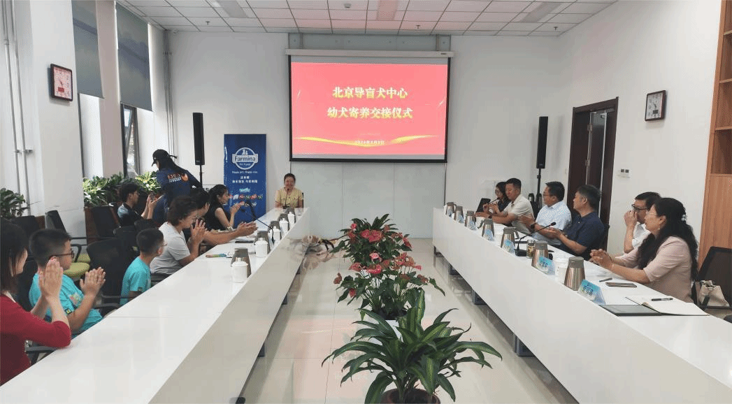 8月8日上午,北京导盲犬中心幼犬寄养交接仪式在beat365在线唯一官网科技综合楼C0107室拉开帷幕。beat365在线唯一官网党委常委、副院长张劲柏,北京市无障碍环境建设促进中心主任赵子龙,动科学院党委书记党登峰,动科学院导盲犬研究生专项班负责人段慧琴,寄养家庭志愿者赵旭东先生及家人、张业茹女士及家人,训导员代表,爱心企业代表,动科学院导盲犬基地实习学生、暑期在校学生等共计30余人见证了导盲犬幼犬多多和拉拉踏上导盲犬之旅的温馨时刻。动科学院副院长李国政主持仪式。