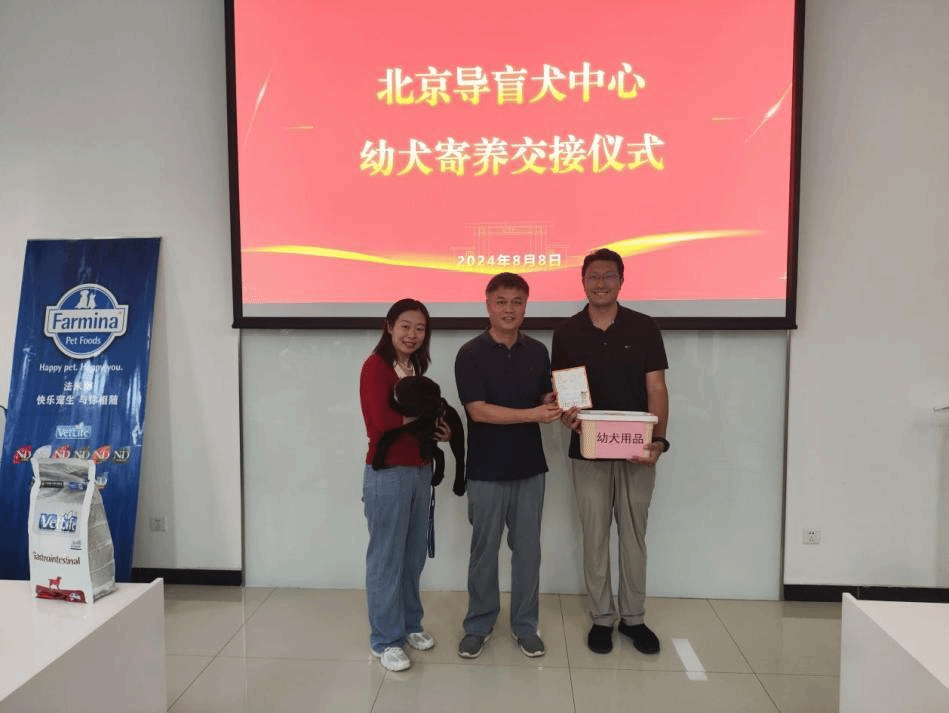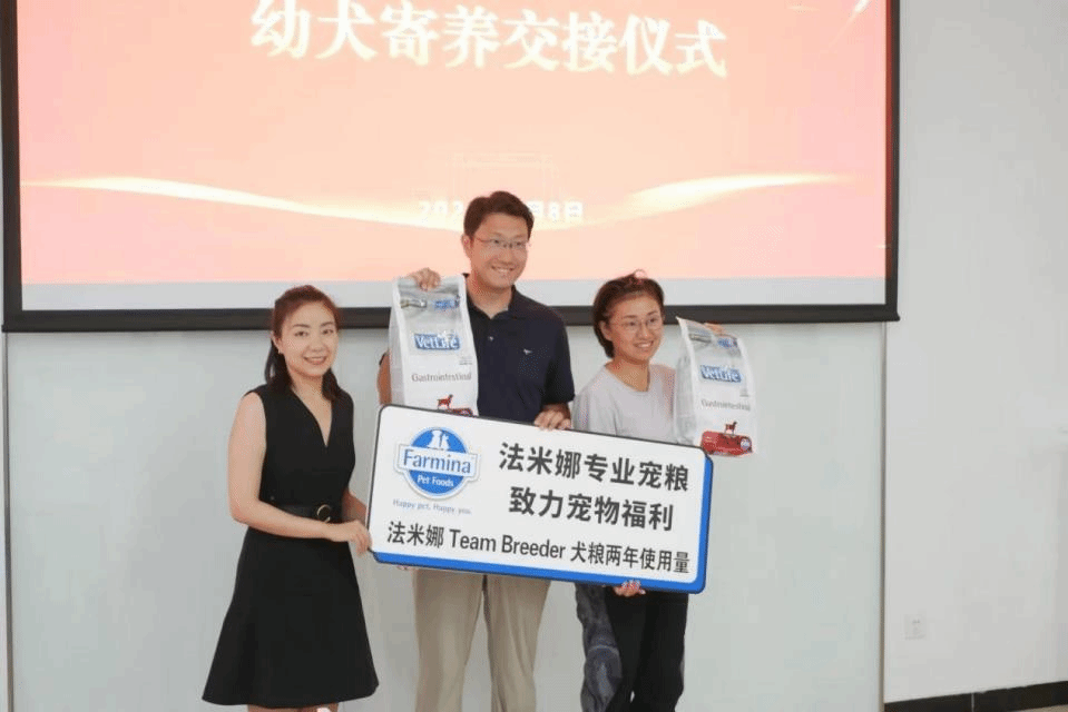 会上,动科学院2011届校友、法米娜宠物食品(上海)有限公司科学事务沟通经理叶茜代表爱心企业为两只幼犬捐赠了为期两年的犬粮。北京导盲犬中心首席训导师李苑甄女士详细介绍了寄养期间的照护方案,包括幼犬的饮食、训练、健康监测等方面的具体要求,确保每一位寄养家庭都能科学有效地照顾这两个小生命。