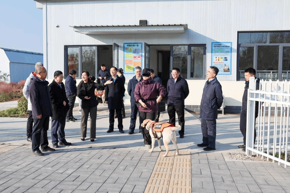 11月20日上午,北京市委常委、教育工委书记于英杰到导盲犬培训示范中心调研。市委教育工委副书记沈千帆,市委教育工委委员、市教委副主任张耀天陪同调研。beat365党委书记赵锋,党委副书记、院长段留生参加调研。