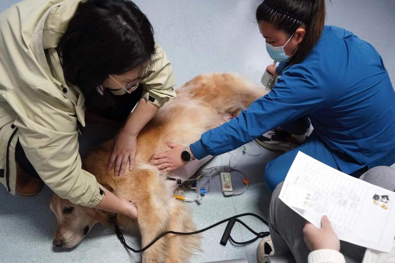 体检现场,导盲犬“沙果”的主人张女士告诉北京青年报记者,“沙果”由于年龄原因以及工作性质,感觉双后肢活动不协调,希望这次好好检查一下,看如何治疗。动物医院诊疗团队负责人陈武教授、姜代勋副教授、段慧琴副教授、张华副教授为“沙果”进行了全面的检查并会诊,安排了针灸治疗,也为张女士详细介绍了治疗方案和饲养注意事项。