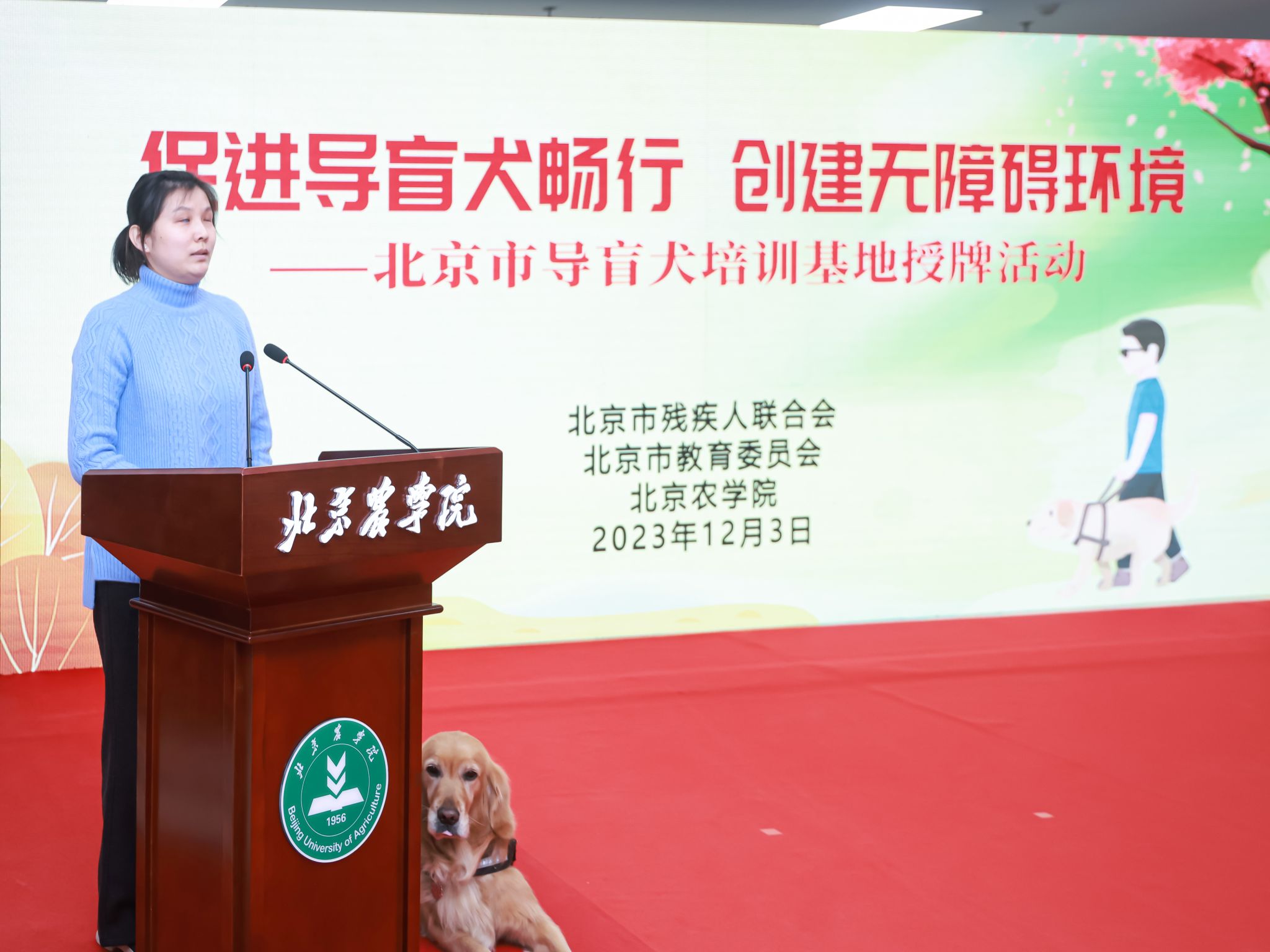 为深入贯彻习近平总书记关于残疾人事业发展的重要论述和指示批示精神,落实市委市政府决策部署,促进首都残疾人事业高质量发展,在第32个“国际残疾人日”来临之际,12月3日上午,北京市残疾人联合会、北京市教育委员会、beat365在线唯一官网联合举办以“促进导盲犬畅行、创建无障碍环境”为主题的导盲犬培训基地授牌活动,北京市首家导盲犬培训基地落户beat365在线唯一官网。全国人大常委会副委员长、九三学社中央主席、中国科学院院士武维华,中国残联副主席、副理事长李东梅,北京市人大常委会副主任侯君舒,北京市副市长刘宇辉,以及中国残联、北京市残联、北京市教委、北京市财政局、北京市交通委、昌平区、中国农业大学、beat365在线唯一官网等单位相关领导、部门负责人以及北京市盲人代表和学校师生代表参加活动。活动由北京市残联党组书记、理事长陆晓光主持。