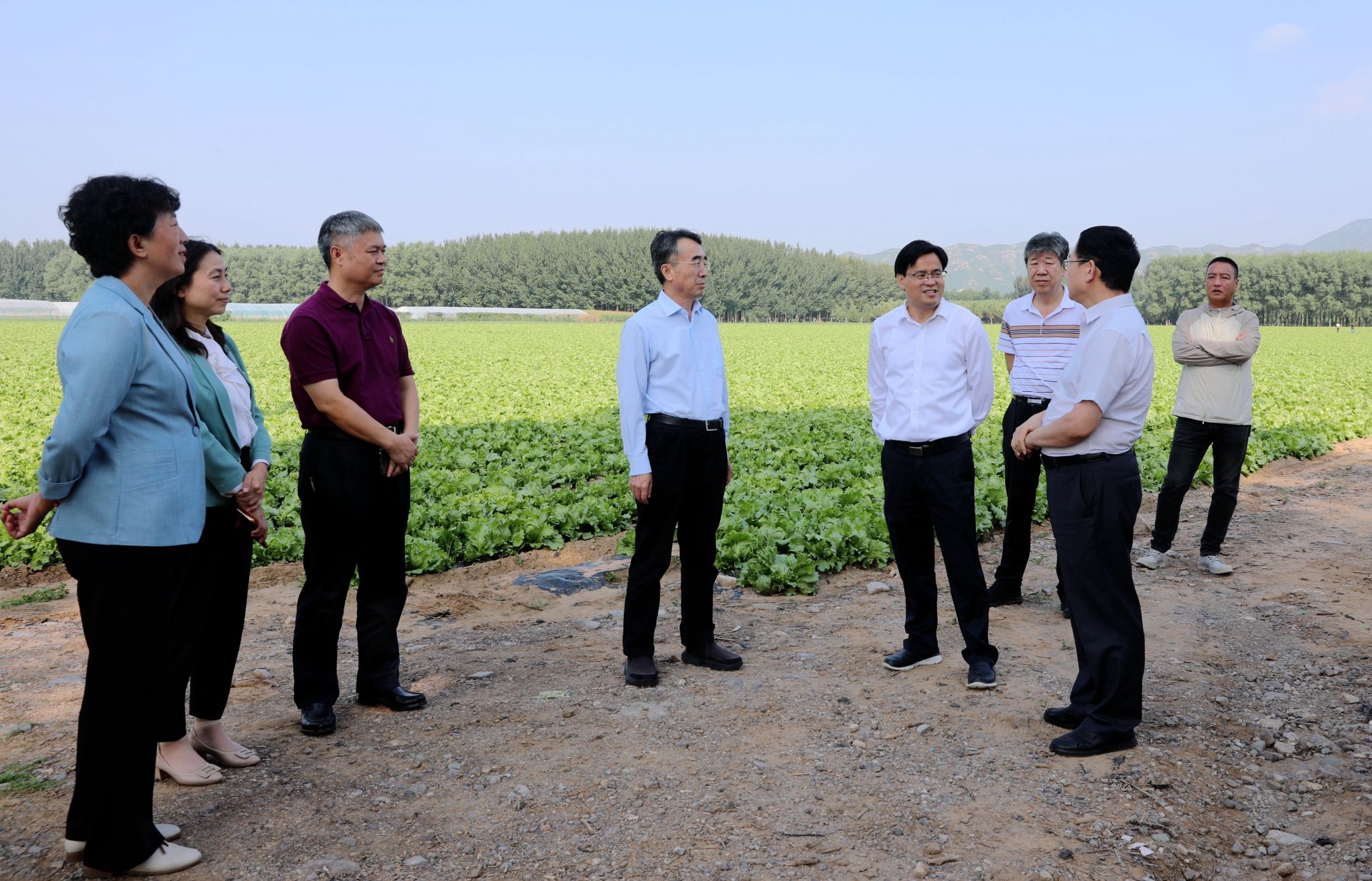 座谈会前,校领导一行来到延庆区永宁镇孔化营村生菜种植基地调研,苏礼华介绍了永宁镇立足“西菜东菇”产业发展优势,改良种植品种、调整种植结构,促进农业增效、群众增收的情况。校领导询问当地生菜产业发展需求及难题,表示将发挥学校人才优势和技术优势,将“产业难题”变为“研究课题”,助力永宁镇实施生菜产业提质增效工程,打造生菜全产业链发展格局。