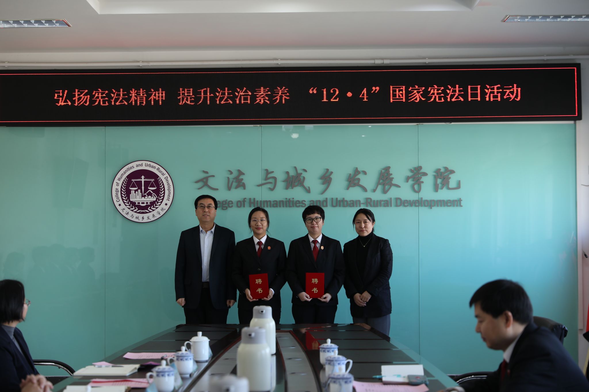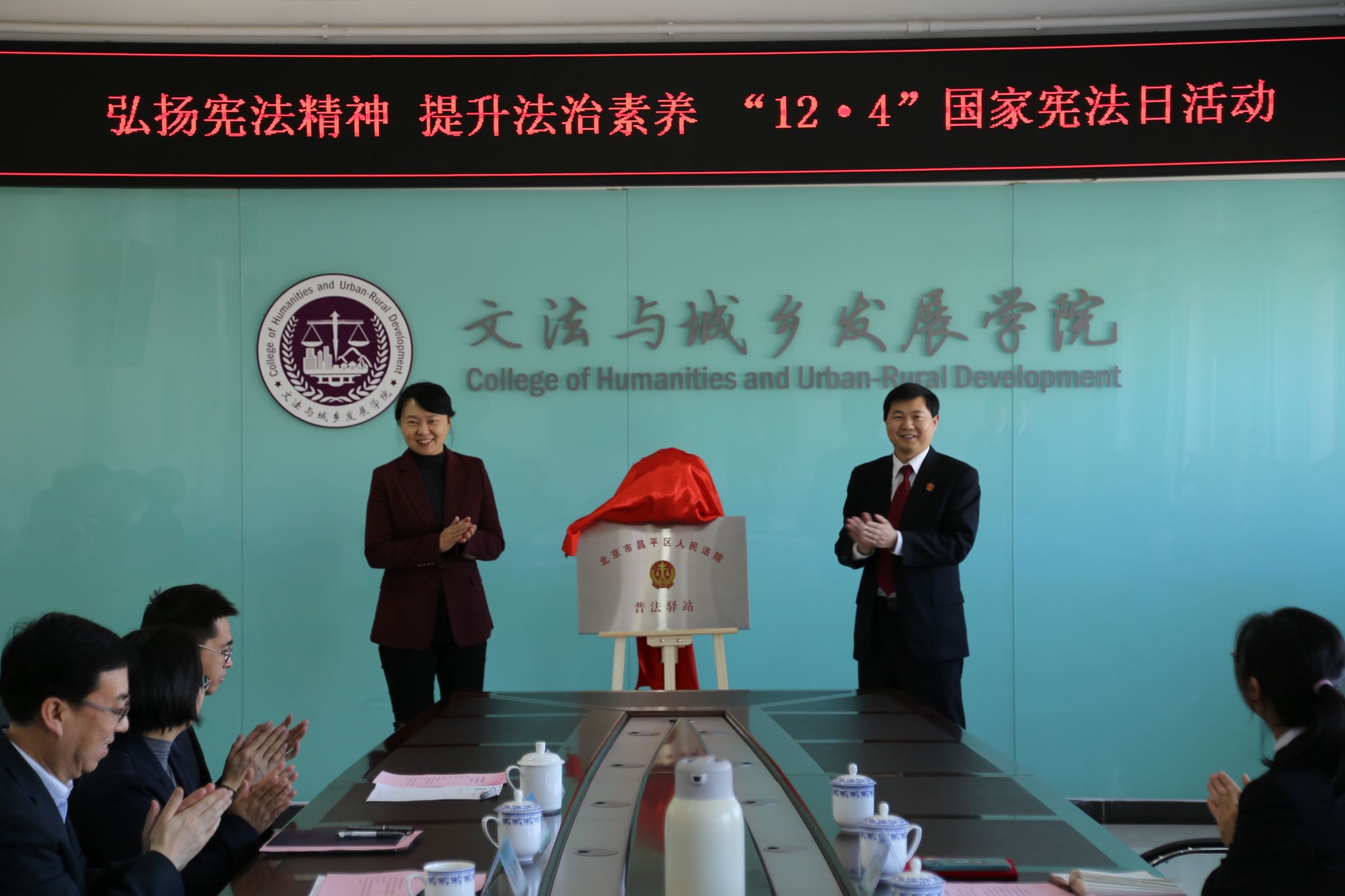 11月29日,学校举办国家宪法日校院共建活动,北京市昌平区人民法院诉源治理人才孵化(培养)基地、北京市昌平区人民法院普法驿站正式在beat365挂牌成立。学校党委常委、副院长武艳,昌平区人民法院党组成员、副院长潘幼亭共同为基地和普法驿站揭牌。武艳为潘幼亭颁发了客座教授聘书。文发学院负责人为沙河法庭庭长邵敏、副庭长刘敏颁发了校外导师聘书。