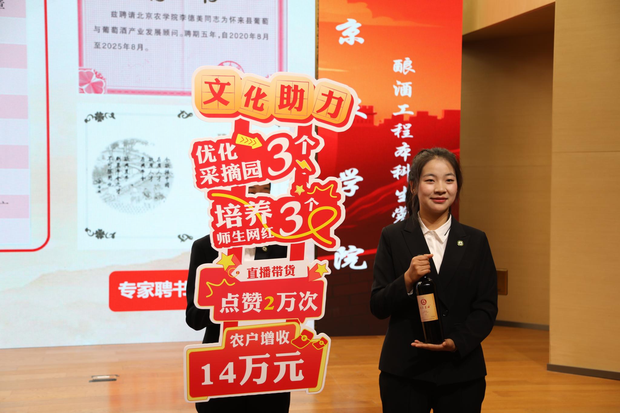 支部积极探索政企校地“1+N”模式,加强校地企融合、产学研融合。多年来通过技术培训、线下帮扶等,在京津冀、新疆、宁夏等地持续开展支农扶农实践,指导村民创新包装20余种、优化采摘园4个、建立网红打卡地3个、培养“网红果农”6个、带动就业80余人,促进农户增收14万余元,为当地葡萄与葡萄酒产业发展作出积极贡献。