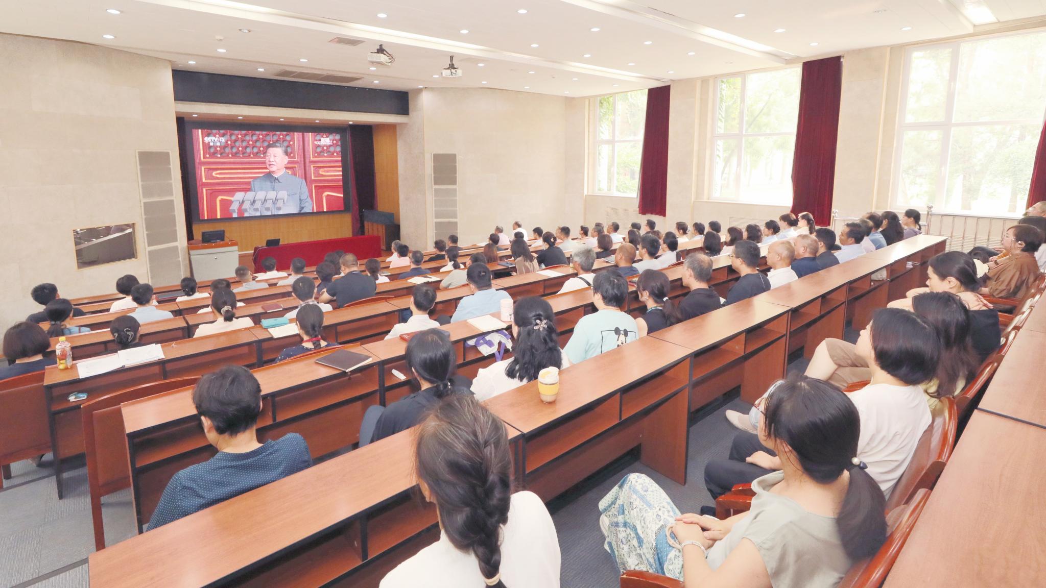 9月3日上午,纪念中国人民抗日战争暨世界反法西斯战争胜利80周年大会在北京天安门广场隆重举行。学校组织党员、干部、师生集中收听收看大会实况,认真聆听中共中央总书记、国家主席、中央军委主席习近平发表的重要讲话。