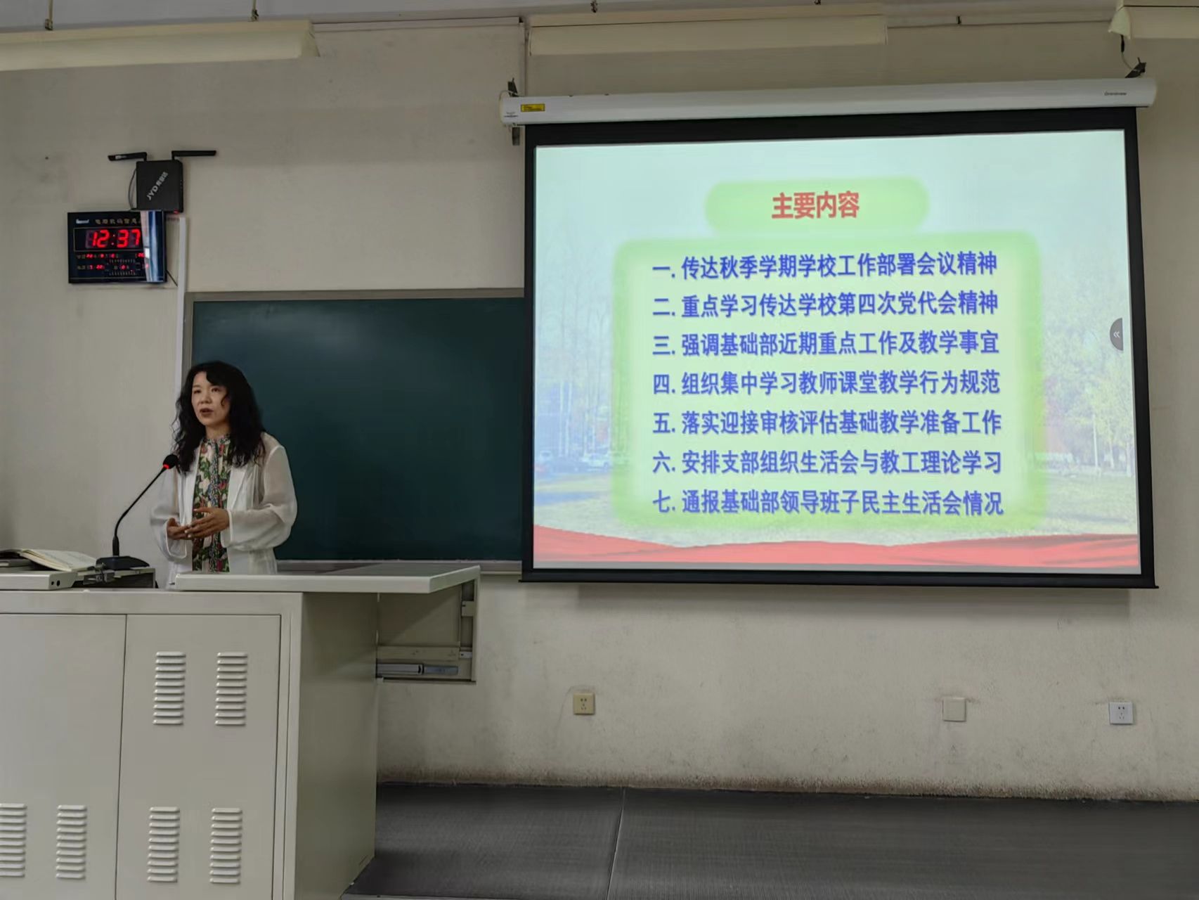 此外,马修地传达了秋季学期学校工作部署会议精神,安排了支部组织生活会与教工理论学习,并通报了基础部领导班子民主生活会情况。