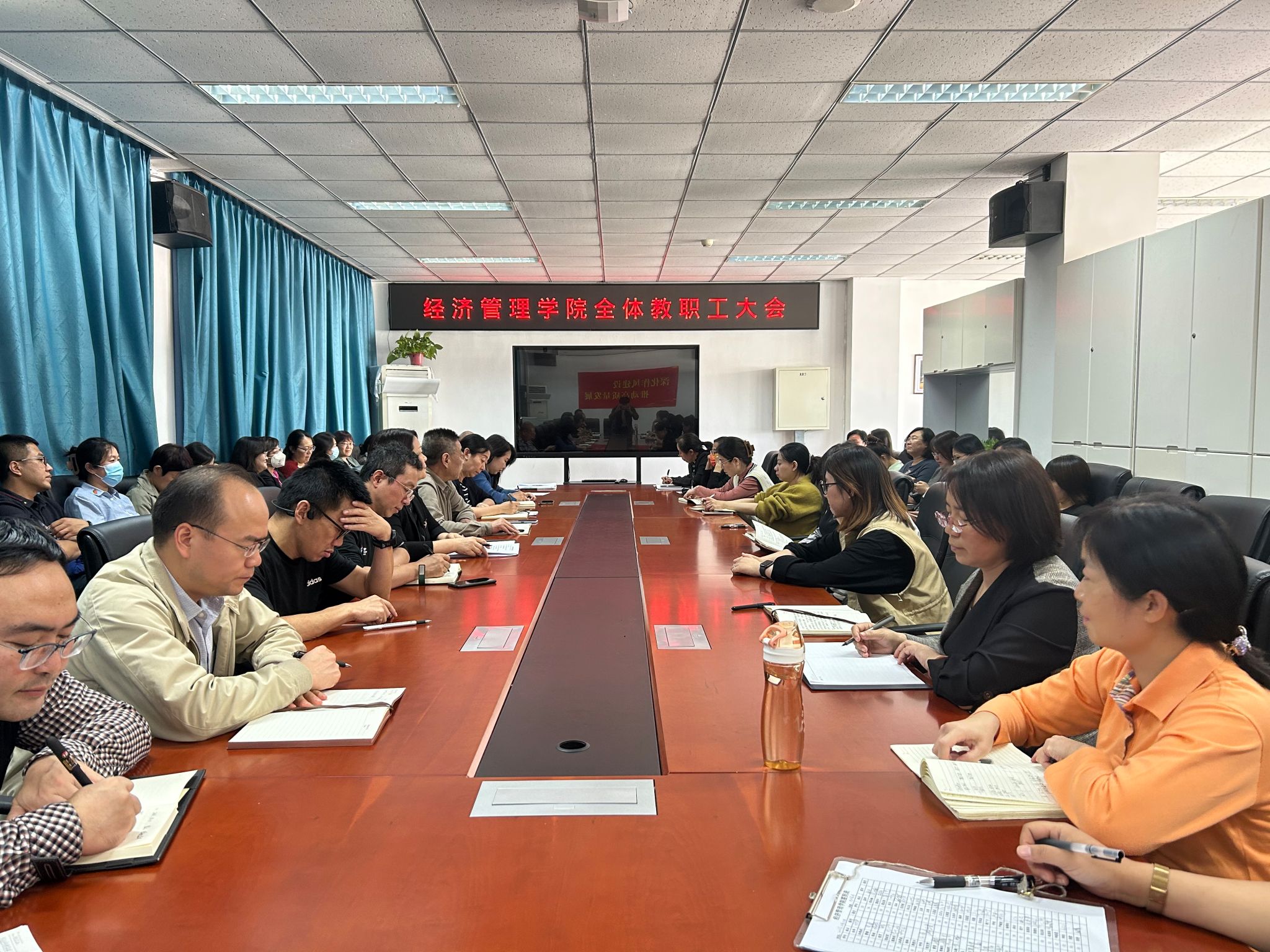 2023年10月11日,经济管理学院召开全体教职工大会,学院党委书记王万山主持会议。