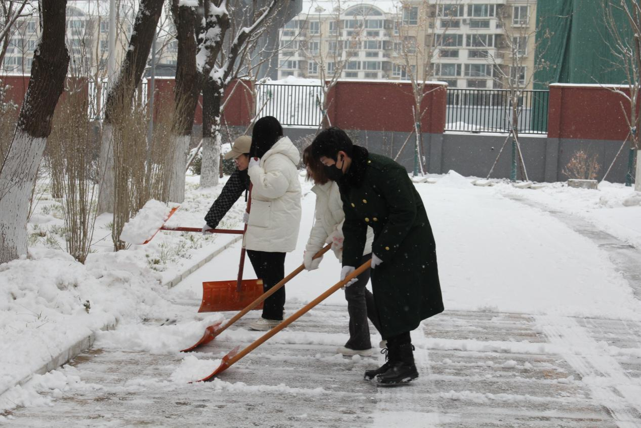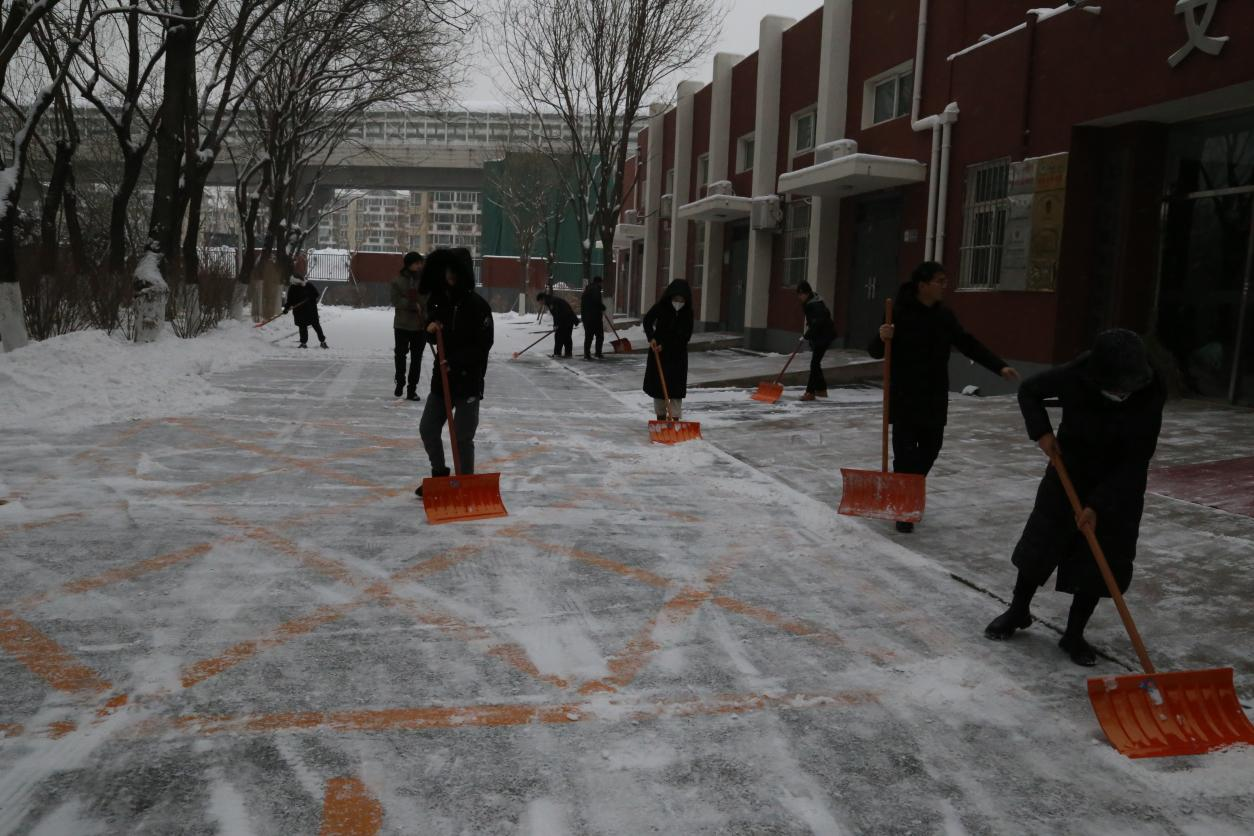 落雪是景,除雪是情。在寒冷的天气里,文发学院师生全身心地投入扫雪除冰的工作中。他们挥舞着扫帚、雪铲等工具,将道路中间的积雪逐渐堆到道路两侧。你一铲、我一铲,经过大家的团结协作和辛勤劳动,清除了文发楼前、五号楼附近和停车场上的积雪与薄冰。