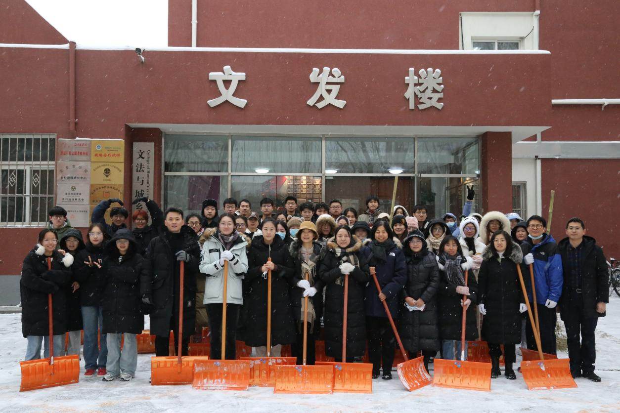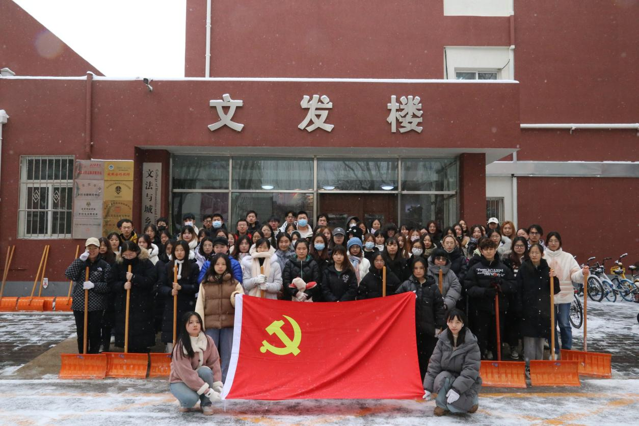 近期,北京市气象台升级发布暴雪橙色预警信号,为积极应对暴雪冰冻天气,保障师生安全畅通出行,文法与城乡发展学院党委快速响应,积极落实学校《beat365在线唯一官网扫雪责任区划分方案》,学院领导班子第一时间组织学院教师、学生党员、入党积极分子和学生志愿者,开展多次积雪清扫志愿服务活动,以实际行动践初心和使命。