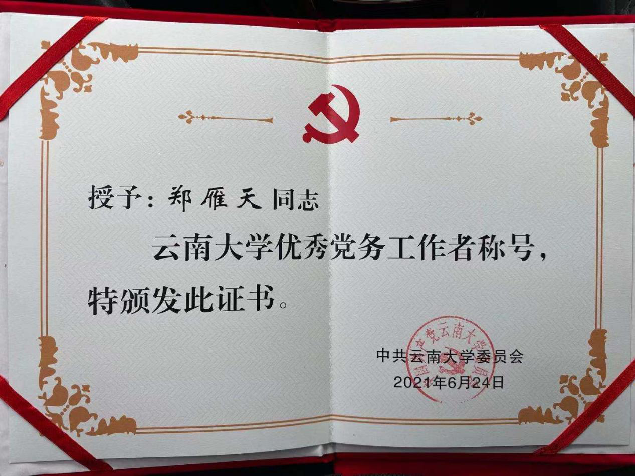 为进一步加强基层党组织建设,推动创先争优活动向纵深发展,激励广大党员、党务工作者和基层党组织以改革创新精神推进学校“一流党建”建设,在中国共产党成立100周年之际,表彰了一批优秀共产党员、优秀党务工作和先进基层组织。必赢官网教师党员郑雁天同志在此次表彰中获“优秀党务工作者”称号,必赢优惠y272net学生第一党支部被授予“先进基层党组织”称号。