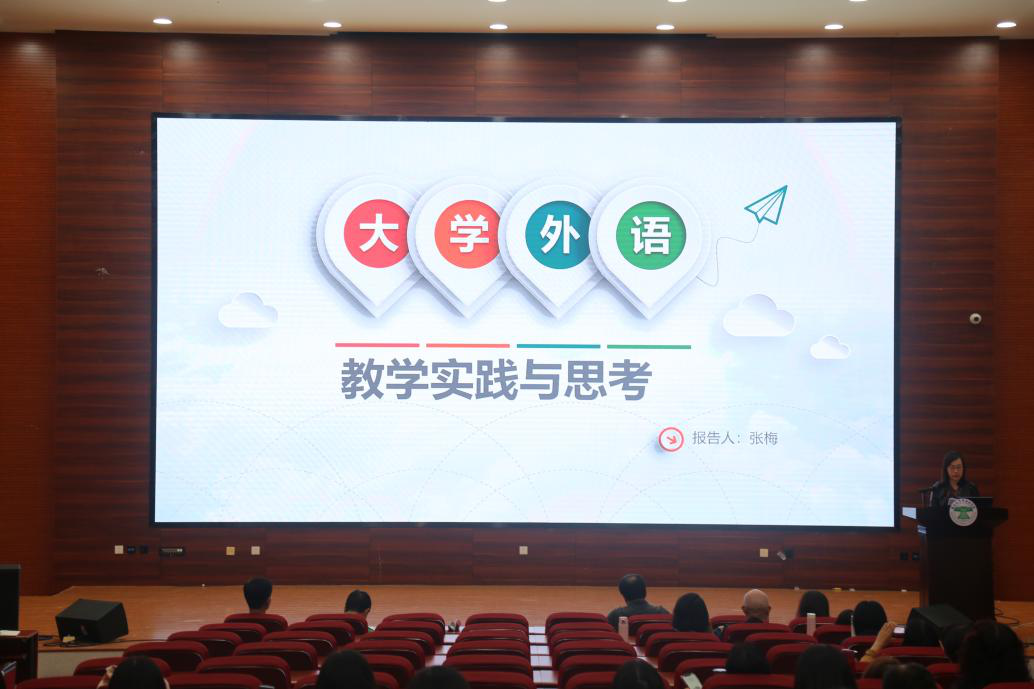 大学外语第一教研部主任张梅首先从课程改革、团队建设、教学研究、发表论文等方面对教学科研基本情况进行了介绍,并提出了加强现代信息技术与教学结合,加强课程思政建设,注重5个素养提升等新的努力方向。