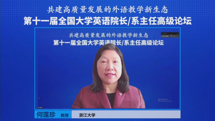 教育部高校大学外语教指委主任委员、浙江大学副校长何莲珍教授致辞