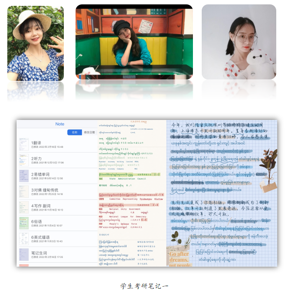 缅甸语专业响应国家“新文科”建设的号召,打破学科壁垒,通过学院与本校国际关系研究院合作,实施本、硕、博贯通式复合型人才培养模式,培养有卓越语言能力和国际视野的国别与区域研究高端人才。此外还与本校新闻学、法学协同制定培养方案,实施“外语+”定制式复合型人才培养模式,以此丰富学生的知识结构,增强学生的就业竞争力。2022年,有三位同学跨专业考取了国别与区域研究、国际传播与跨文化传播专业的研究生。