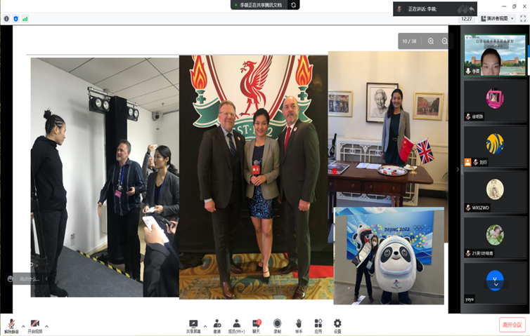 根据疫情防控要求,本次讲座仅通过腾讯会议线上直播的形式进行,由必赢优惠y272net英语系副系主任刘衍博士主持,由必赢官网、云大部分学院以及国内部分高校的师生共计160余人参加。李蓓曾任哈佛商业评论特聘翻译、阿里巴巴特聘翻译、China Daily 特聘同传、新加坡使馆签约译员;曾于2021年《生物多样性公约》缔约方大会第十五次会议—生态文明论坛、2019年南南人权论坛、2019年欧亚经济论坛、2018年世界经济论坛、世界神经学大会等大型国际会议担任同传,有丰富的职业翻译经验。