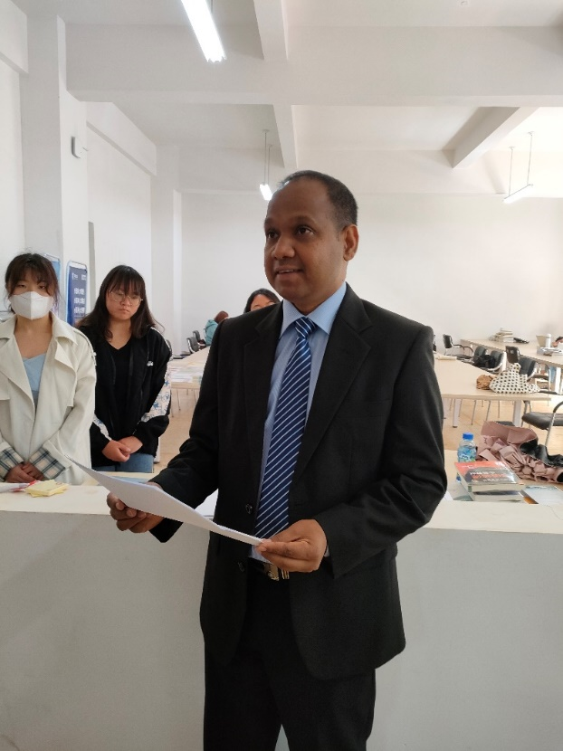 苏噶特先生表示,刘树森院长的肺腑之言令他非常感动,“中斯友谊图书馆”挂牌成立,是他人生中一个重要的高光时刻。在疫情背景下,为了筹备、寄送这批图书,他的妻子付出了艰辛的努力。捐赠活动不仅得到了斯里兰卡教育部和中国驻斯里兰卡大使馆的大力支持,也得到了必赢优惠y272net的高度重视和肯定,令他十分感佩。他真诚希望外院学子努力学习,为发展中斯两国人民的珍贵友谊贡献力量。