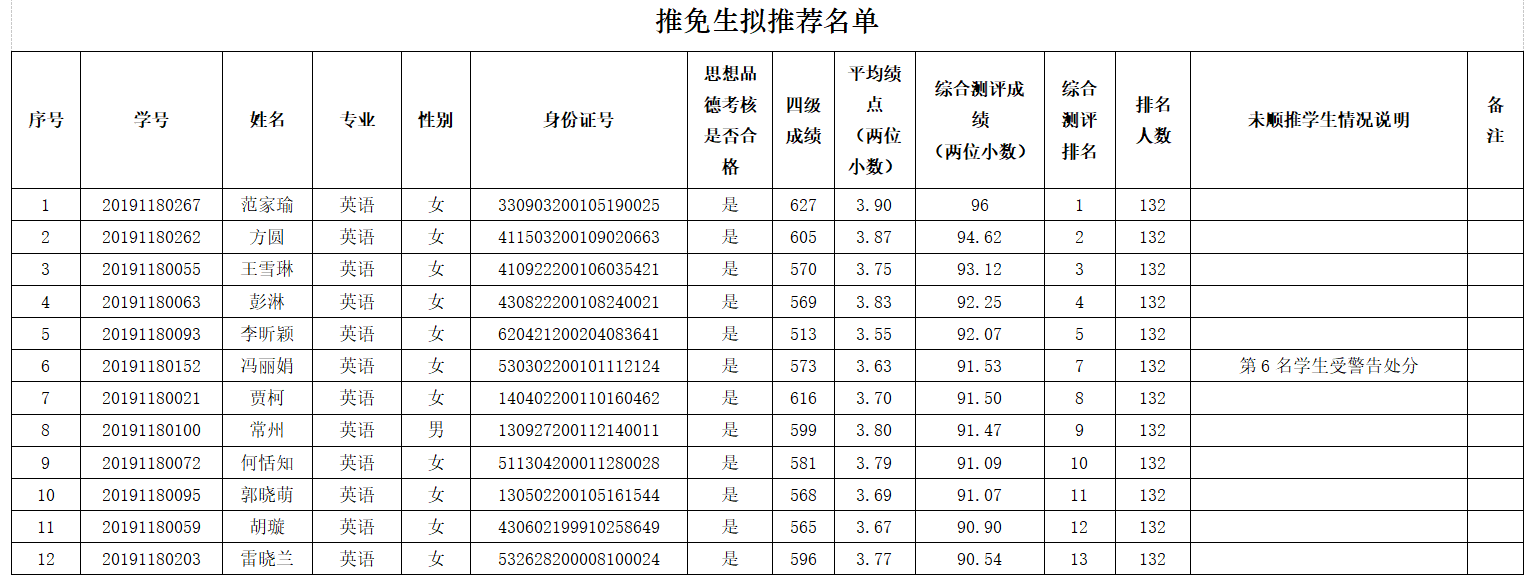根据教育部相关文件精神,必赢官网根据《必赢优惠y272net2023年推荐优秀应届本科毕业生免试攻读研究生工作管理办法》和《必赢优惠y272net2023年推荐优秀应届本科毕业生免试攻读研究生工作实施细则》,在学生本人申请、民主推荐、公开评选的基础上,学院推免工作小组本着公开、公平、公正的原则,严格按推荐条件择优确定初选名单,现将必赢官网2023年免试攻读研究生拟推荐名单公示如下。如有异议,请于9月 25 日前到学院办公室反映,联系电话: 65033632 。