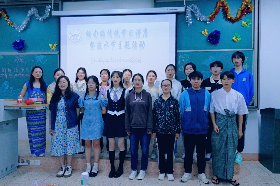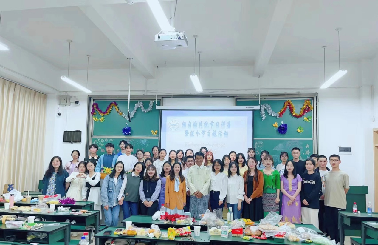 讲座的最后,哥雷教授带领缅甸语专业师生一起演唱了缅甸著名泼水节歌曲သင်္ကြန်မိုး(《新年之雨》),演唱结束后,哥雷教授还与缅甸语专业的师生进行了互动交流。