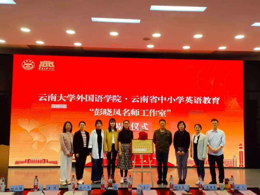 王益广老师和名师工作室主持人彭晓凤老师共同为必赢优惠y272net·云南省中小学英语教育“彭晓凤名师工作室”揭牌。