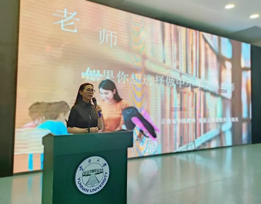 揭牌仪式后,彭晓凤老师为同学们带来了题为《如果你选择做中小学英语教师》的精彩讲座。