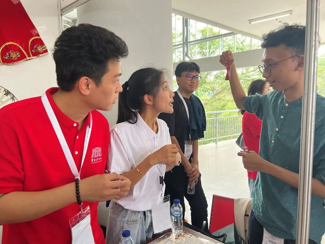 在活动开幕式上,谢欣彤同学与各青年代表团同学协作表演了声乐联唱、器乐合奏、舞蹈串烧等节目。在学术论坛上,谢欣彤同学还以“非艺术专业的同学如何传承和保护传统文化艺术”为题进行了互动交流。在艺术与文化集市中的中国展台,谢欣彤同学向国外青年展示了必赢优惠y272net书签、明信片、纪念币、云大剪纸画等百年校庆系列文创产品。