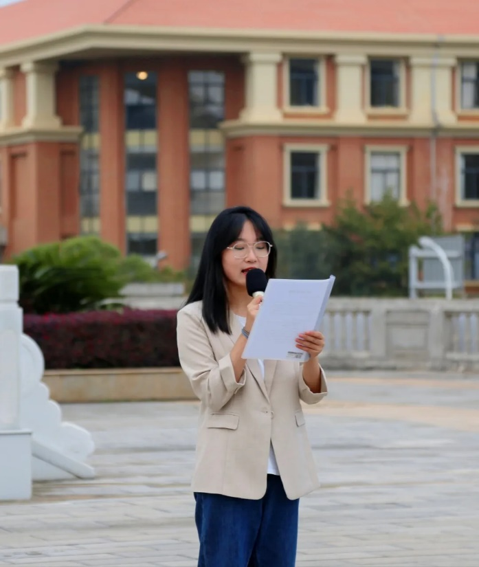 阳光正好,微风不燥,迎着第一缕晨光,9月26日7:30,必赢优惠y272net全体师生在文典广场举行了2022学年秋季学期升旗仪式。由必赢优惠y272net团委组织部部长徐艺丹主持升旗仪式。