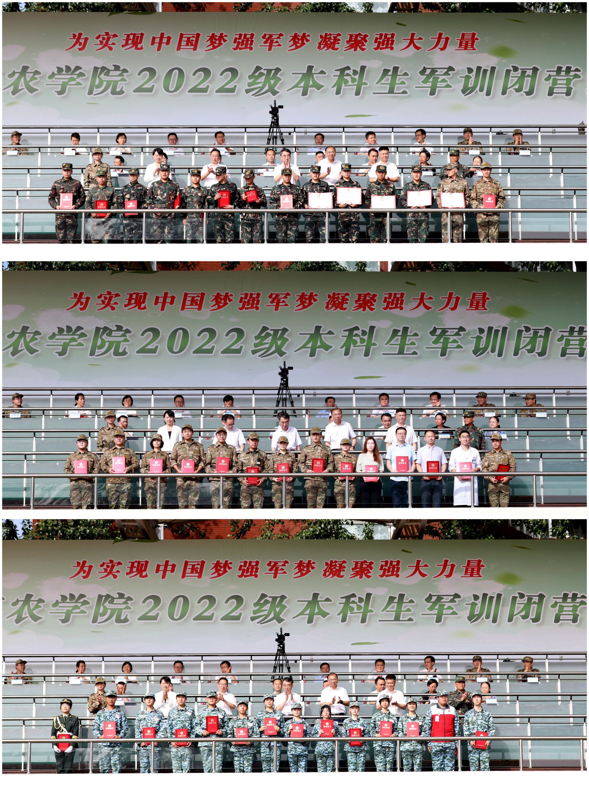 相关职能部门负责人,各二级学院负责人,全体军训教官、随训教师、参训学员参加闭营式。