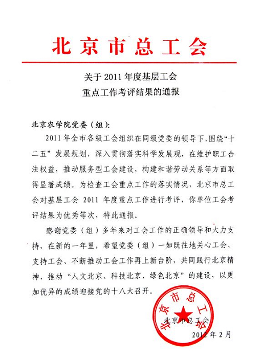 家医学院校附属医院等单位中脱颖而出,获北京市总工会“重点工作考评优秀单位”称号。