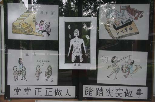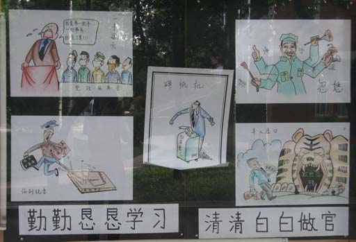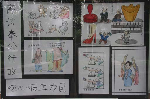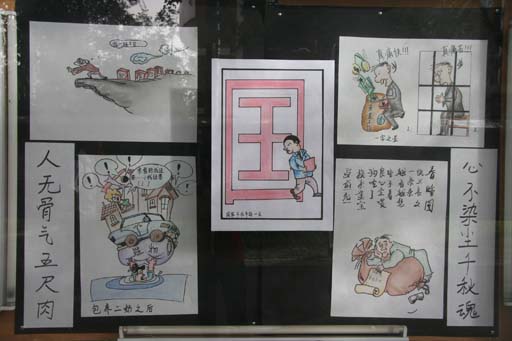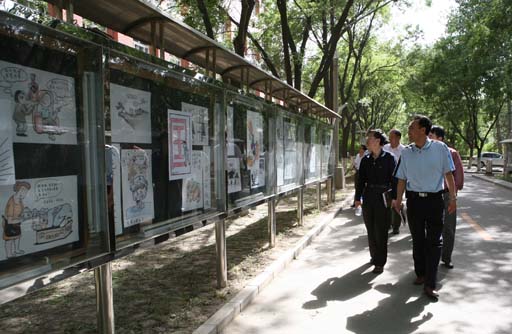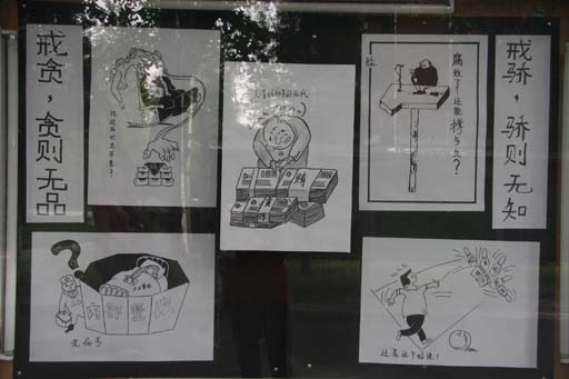 我校“反腐倡廉漫画展”开展这是党风廉政建设宣传教育月的活动内容之一。beat3652008年党风廉政建设工作会议暨党风廉政建设宣传教育月活动启动仪式结束后,与会人员参观了漫画展。
