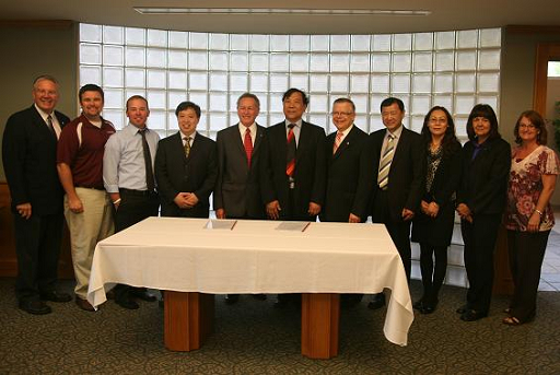 应美国康伯斯维尔大学(Campbellsville University)的邀请,beat365副校长杜晓林率团于5月28日—5月30日访问了该校。受双方校长的委托,杜晓林副校长与康伯斯维尔大学副校长Prof. Dr. Franklin D Cheatham签署了两校“交换生”项目的合作协议,该协议在两校共同签署的合作框架协议基础上就交换生项目的深入合作和运行进行了明确规定。美国康伯斯维尔大学副校长Prof. Dr. Franklin D Cheatham、副校长John E Chowning、副校长Prof. Dr. H. Keith Spears及beat365代表团全体成员参加了签署仪式。