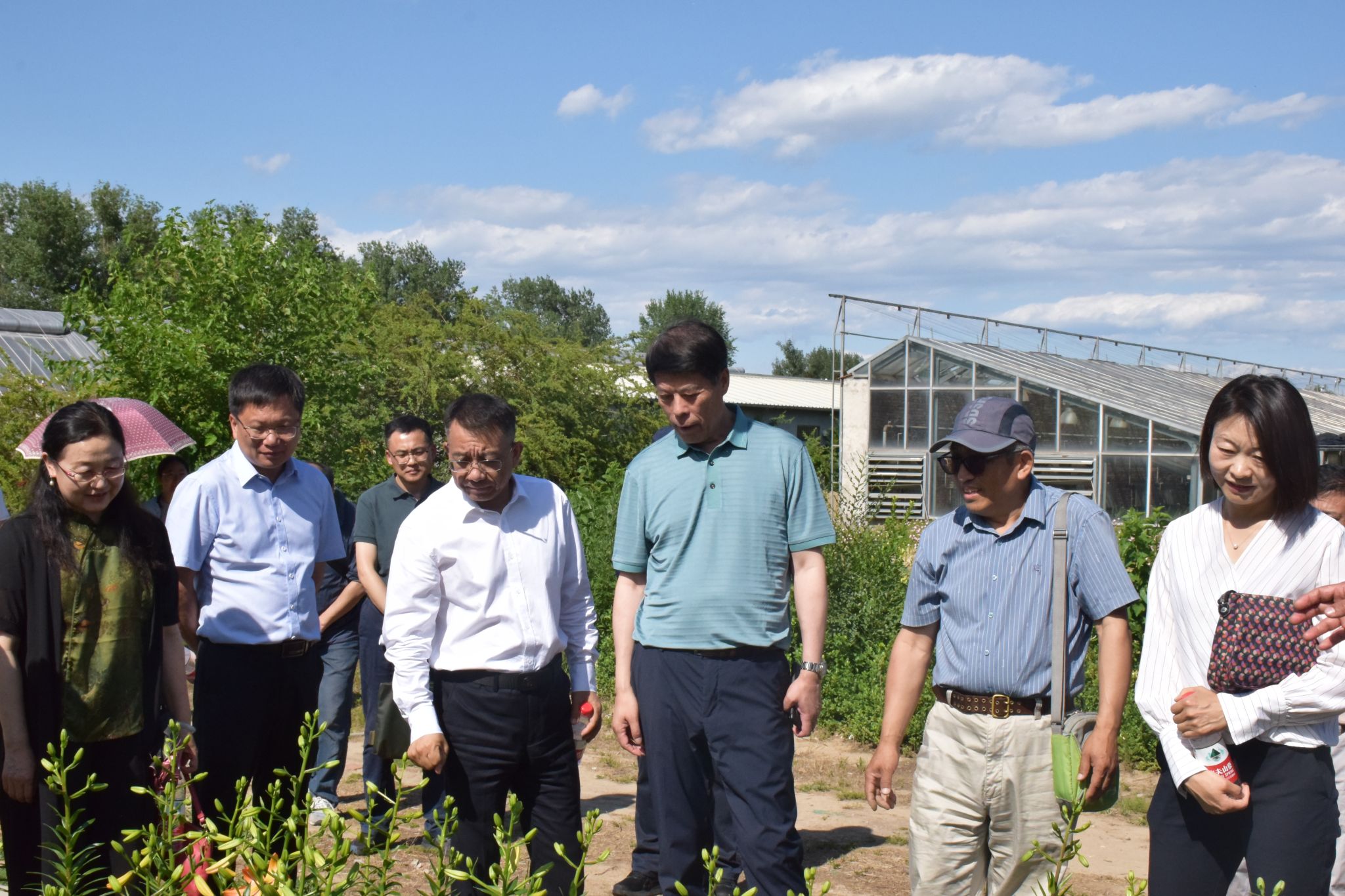 座谈会后,贲权民一行调研了beat365国家大学科技园、植物生产国家级实验教学示范中心实践基地,重点走访了园林学院实践基地及连栋温室,了解百合、月季、一串红等新品种,对学校科技创新成效、花卉科技转化等方面的做法和成效给予高度肯定。