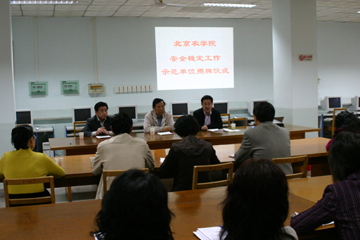 ,党委保卫部为beat365首个“安全稳定工作示范单位”图书馆举行挂牌仪式。副院长杜晓林、校纪委书记朱生利、植科系党总支书记潘金豹、高职学院党总支书记韩大伟及图书馆有关工作人员出席。挂牌仪式由校保卫处处长王万山主持。杜晓林、朱生利两位校领导为图书馆“安全稳定工作示范单位”揭牌。