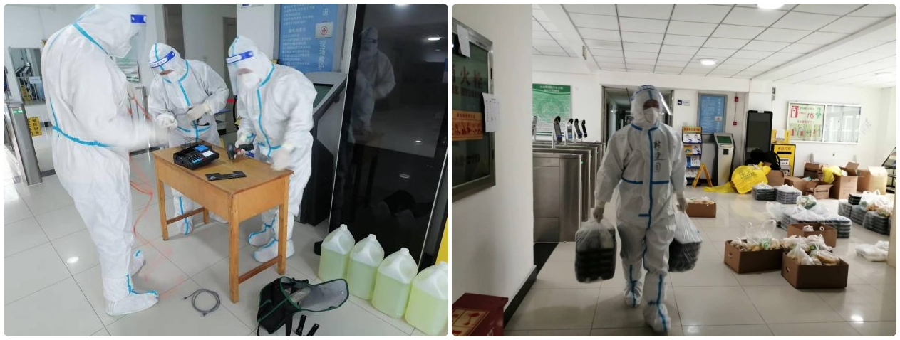 最后一路小队驻守家属区,负责家属区的维修保障、校内外部分防疫物资的保管转运和北农酒店隔离人员的送餐工作。