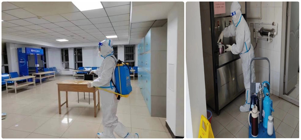 他们还协助进行物资消杀,每次食堂物资的卸车消杀,都有维修科同志的身影。大家笑着说:“咱是学校一块砖,哪里需要往哪里搬。”他们任劳任怨,24小时轮流在岗,将初心写在行动上,把使命落在岗位上,用实际行动为师生筑起后勤服务保障的防护线!