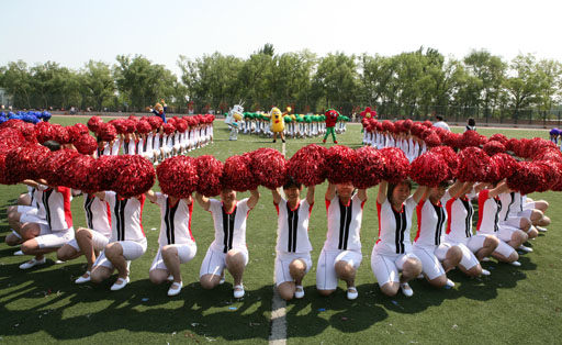 8:07首都高校第四十四届学生田径运动会开幕式上,beat365在线唯一官网600名女生以她们特有的方式——组成的团体操方阵迎盼奥运,庆祝本届运动会圆满成功。