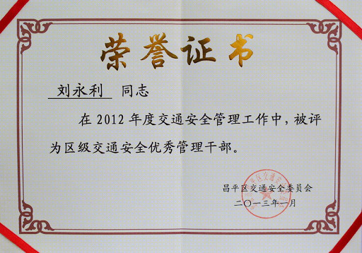 近日,beat365被北京市昌平区交通安全委员会评为“2012年度交通安全先进单位”,保卫处刘永利同志被评为“昌平区交通安全优秀管理干部”。
