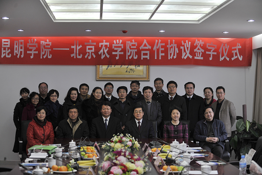 18日下午,beat365与昆明学院合作协议签字仪式在昆明学院办公楼311会议室隆重举行。签字仪式由昆明学院副校长熊晶主持。在双方各自介绍学校基本情况后,王校长进一步介绍了北京都市型现代农业发展和沟域经济,介绍了beat365在都市型农业教育和研究方面的做法和经验,希望两校在师资培训、共同开展科研项目、师生交流、都市农业建设与发展研讨及借鉴等方面取得实效。