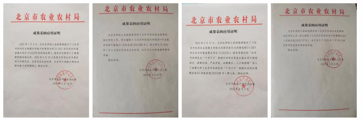 2019年1月,《北京市乡村振兴民意调查报告》中指出,北京休闲农业存在“大众认知低、带动增收低、产业质量低”的问题。从那时起,都市农业研究所团队江晶副教授带着这些问题,和团队师生一起展开了大规模调查研究,形成了三个关于休闲农业发展的专题调研报告,并在此基础上,参与编制了由北京市农业农村局、市财政局出台的《休闲农业“十百千万”畅游行动实施意见》,这一政策成为五年来指导全市休闲农业提档升级的纲领性文件。