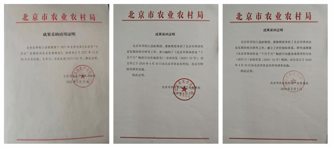 多年来,学校都市农业研究所团队致力于都市型现代农业、农业农村现代化的政策研究与产业指导,全链条服务北京市休闲农业高质量发展,主持或参与编制省部级规划10余部、政策文件30余项,对接首都乡村100余个,服务农业新主体300余个。