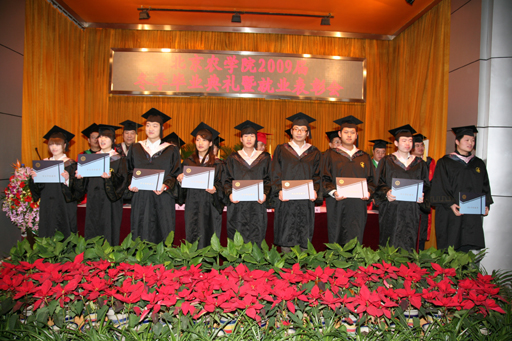 上午,在小报告厅,beat365隆重召开2009届毕业典礼暨就业表彰会,党委书记王慧敏、院长王有年、党委副书记高东、高喜军、副院长杜晓林、姚允聪、纪委书记朱生利等校领导出席会议,会议由学生处韩宝平处长主持。