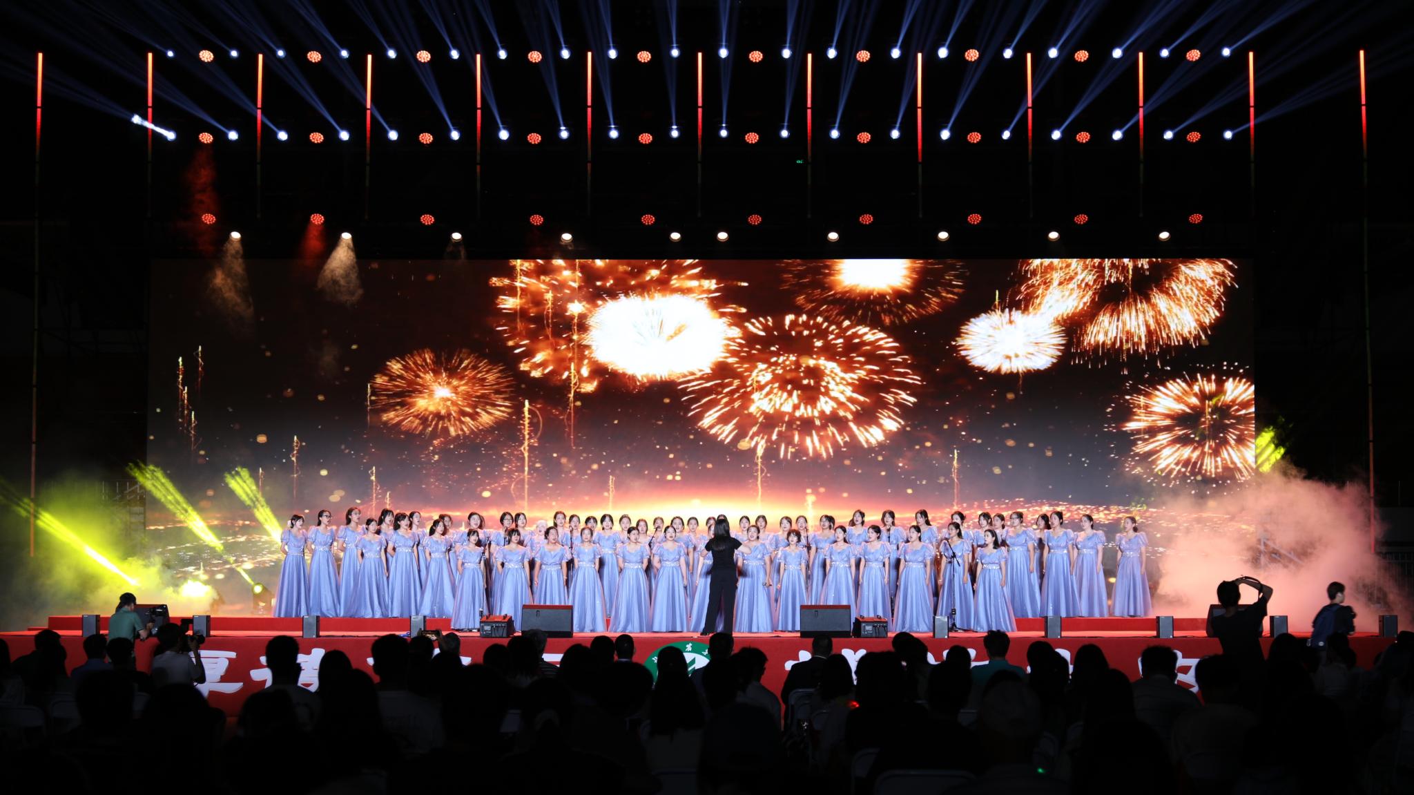 大学生艺术团混声合唱团与教职工合唱团同台演绎《奋斗有我》,老师们的殷切叮咛随歌声流淌。