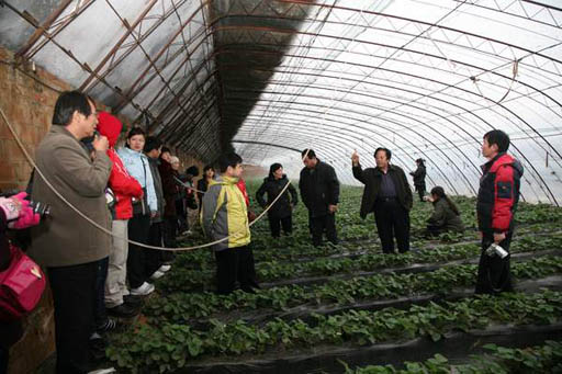 在山东庄镇绿都林科技示范园,蒙古国专家实地考察了设施草莓的种植基地和先进的果品储藏设备,询问了优质果品生产的技术与管理措施,品尝该基地生产的优良果品。