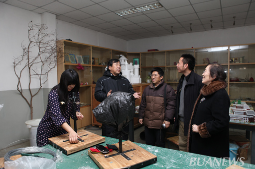 模型实验室里,同学们正在李玉仓老师、肖武老师的指导下,相互做模特,兴致勃勃地进行雕塑制作,副校长杜晓林与教师和学生进行了亲切交流。学生们表示这样的课程使理论知识通过实际动手操作得到应用,既调动了同学们的学习兴趣,又提高了大家的动手能力,非常受欢迎。