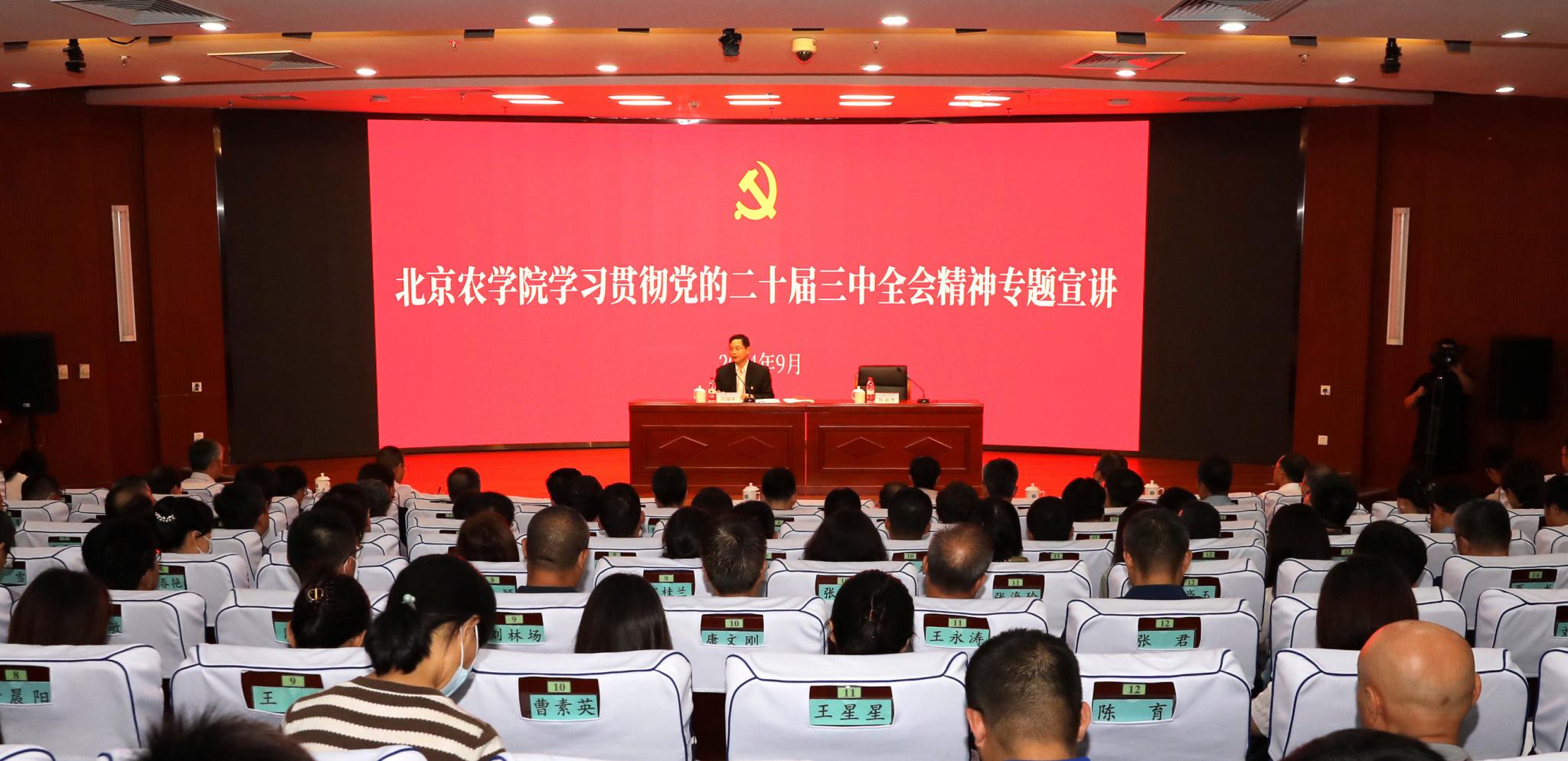 报告会上,段留生紧扣党的二十届三中全会关于统筹推进教育科技人才体制机制一体改革的部署和要求,结合新时代首都发展和全面推进乡村振兴战略需求,深刻分析了学校改革发展面临的机遇与挑战,重点围绕深化教育教学改革、提高知农爱农新型人才培养质量、提升学科专业整体水平、增强科技赋能乡村振兴本领、深化人才发展体制机制改革等方面,作了深入系统的阐释和宣讲。