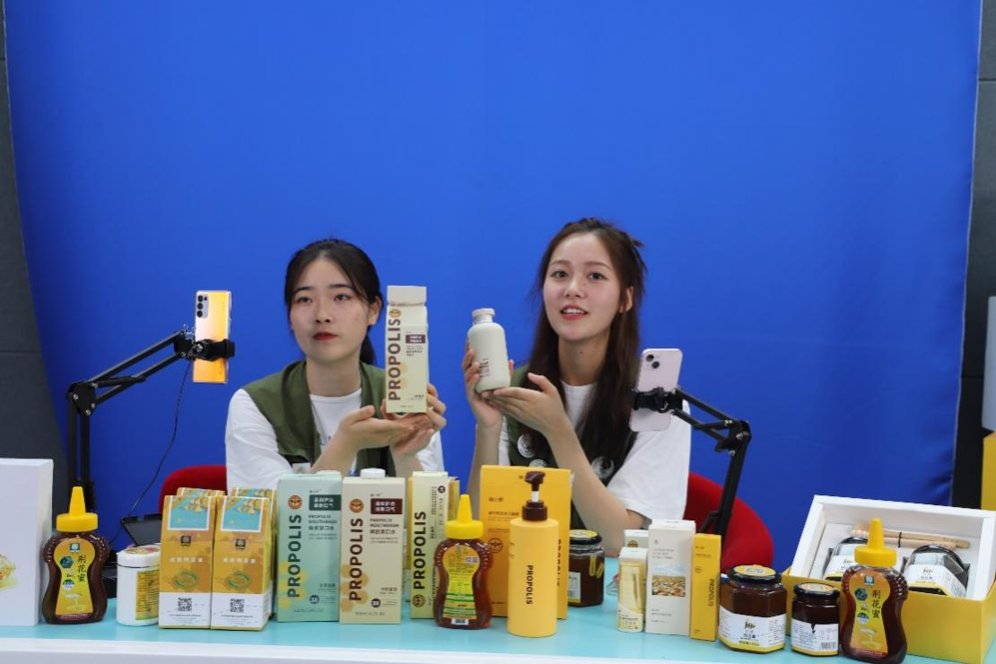 签约仪式后,与会人员一同参观了经管学院农产品品牌策划与新媒体运营中心,现场观摩了正在进行的数字农业运营专项班农产品电商直播,了解学院在学生数字营销定制化培养、专业场景全方位模拟与专业系统实践实训等方面的做法和成效。