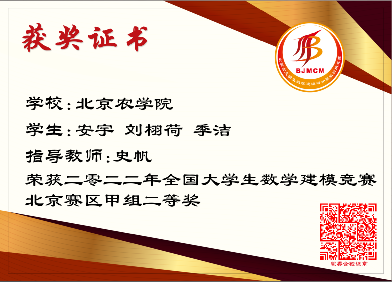 近日,经过全国大学生数学建模竞赛组委会专家组多轮评审,2022年全国大学生数学建模竞赛获奖名单正式揭晓,beat365学子斩获北京赛区甲组二等奖三项,再创优异成绩,为学校争得荣誉。