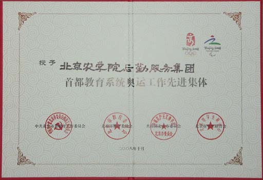 beat365后勤服务集团被中共北京市委教育工作委员会、北京市教育委员会、共青团北京市委员会、北京市学生联合会授予“首都教育系统奥运工作先进集体”荣誉称号。