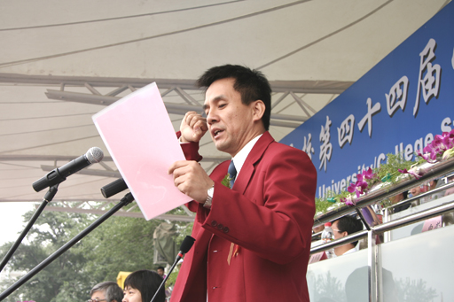 8:51总裁判长陈伟强代表全体裁判员宣誓:保证严格履行裁判职责,做到“严肃、认真、公正、准确”。为公平竞赛严格执法,为运动员取得优异成绩做出贡献。