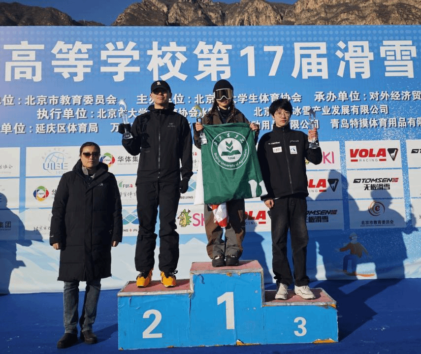 在带队教师刘军占、潘子秋的悉心指导下,beat365滑雪队参赛运动员顽强拼搏、突破自我,在多个项目中取得了优异成绩。国际学院王炳森同学获得男子乙组高山大回转、男子乙组高山回转两项冠军,园林学院郝紫蒙同学获得女子乙组单板大回转冠军,国际学院王靖舒同学获得女子乙组高山大回转亚军,经济管理学院李睿巽同学获得男子乙组单板大回转季军,食品科学与工程学院杨湛斌同学获得男子乙组高山大回转第五名,动物科学技术学院蔡子雯同学获得女子乙组单板大回转第六名。