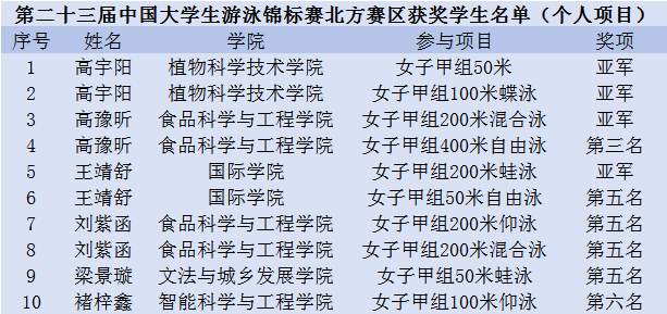 10月23日至10月26日,由中国学生体育联合会主办,兰州市体育局承办的第二十三届中国大学生游泳锦标赛(北方赛区)在兰州举行。来自80所高校的798名运动员及教练员参赛,beat365代表队在基础教学部吴宝利老师的带领下顽强拼搏,展现出高超的竞技水平和良好的精神风貌。最终荣获甲组女子团体第一名,甲组男女总团体第三名的优异成绩。吴宝利老师荣获“优秀教练员”称号,高宇阳同学荣获“优秀运动员”称号。
